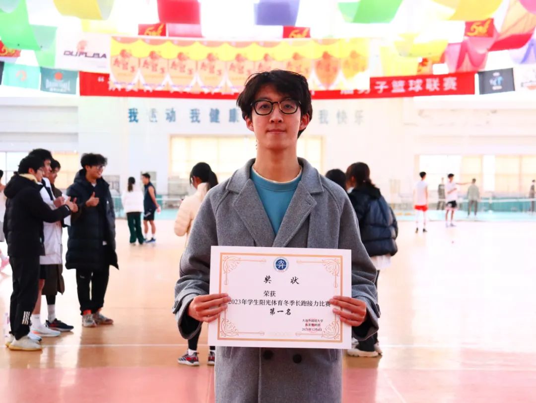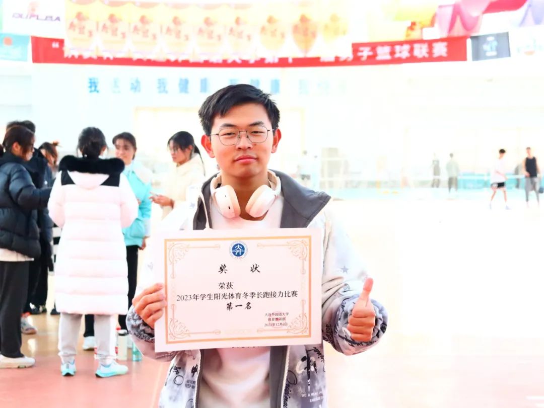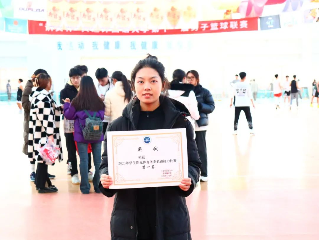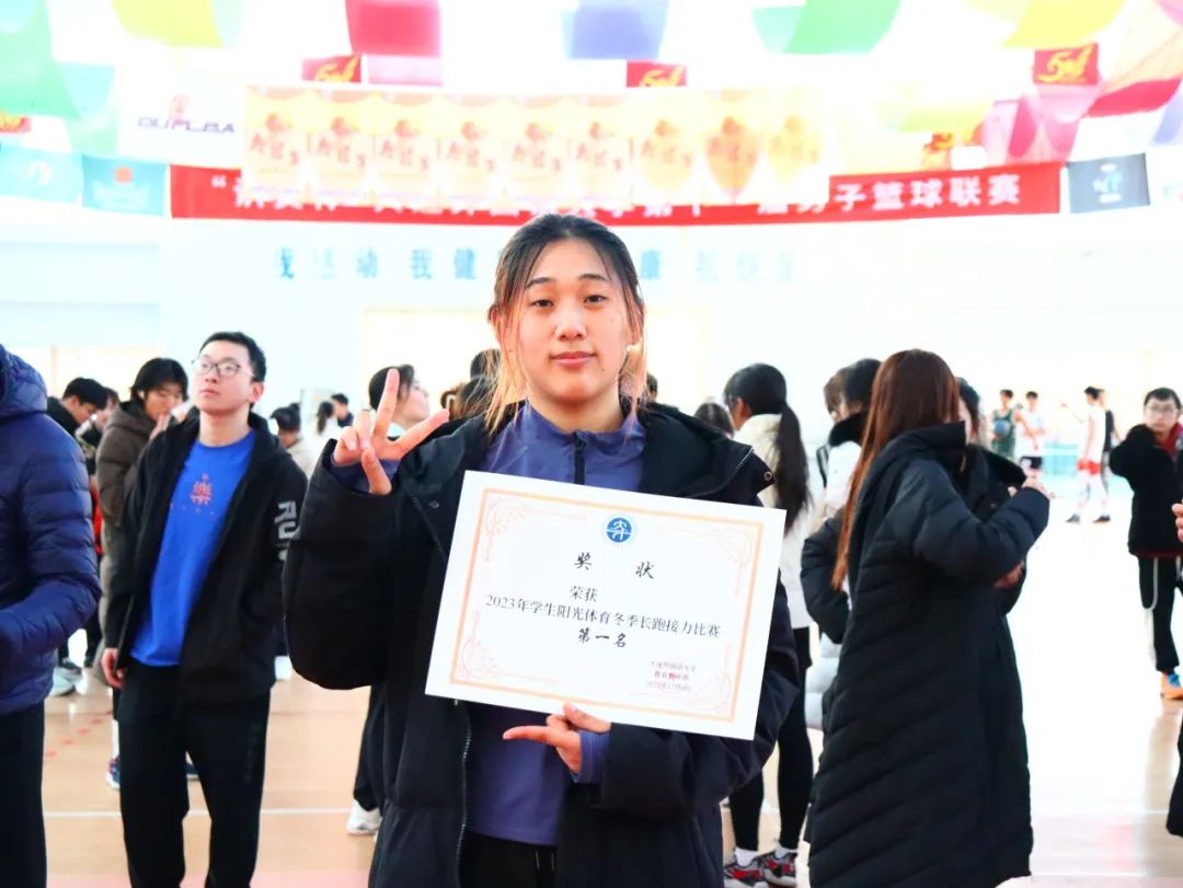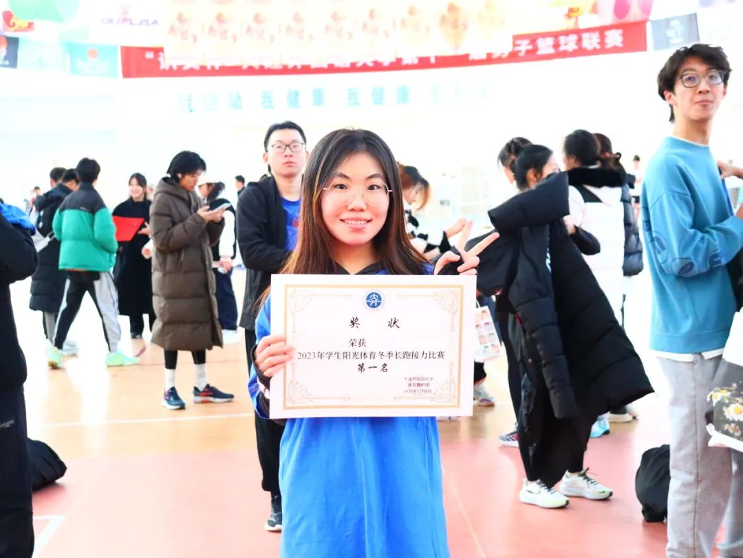 在阳光体育冬季接力长跑比赛中获得了第一名的好成绩。