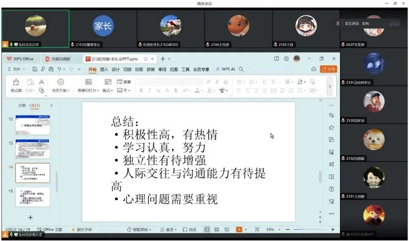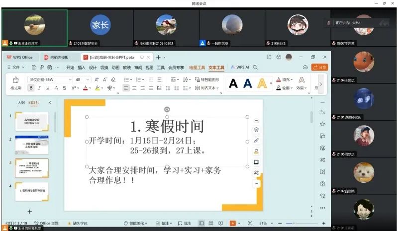 分团委书记兼辅导员朱林老师、辅导员龚艺老师、辅导员王楷瑞老师主讲,全体本科生家长参与。