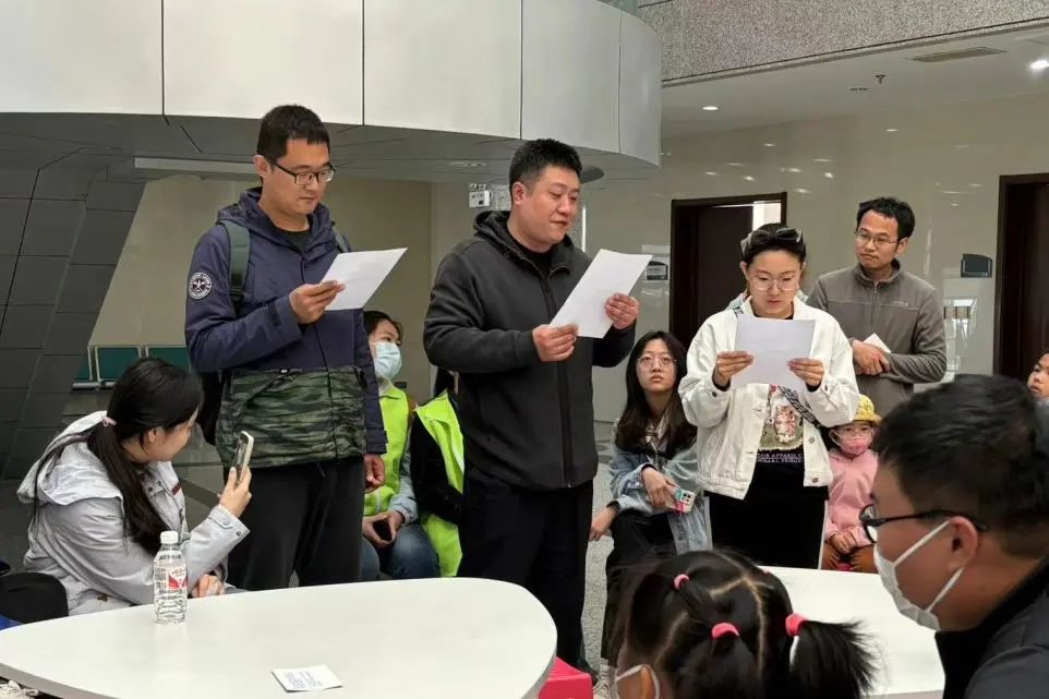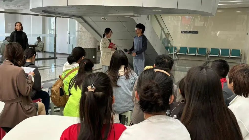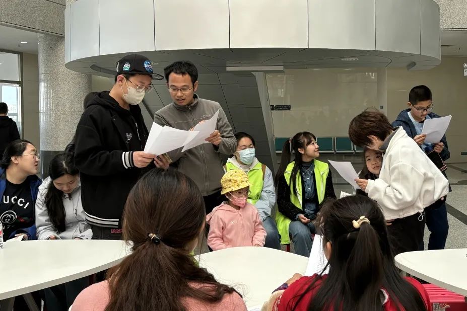 学术部成员随机加入小组引导参与活动的市民对选取的相关片段进行全英文的分享交流。交流结束后,各小组通过选取的英文故事与童话片段进行角色扮演朗读,深入角色内部切身体会外语表达的不同情感。随后,学术部成员给在场成员分发英文诗材料,播放音频,开始领读环节,帮助大家强化英文发音。