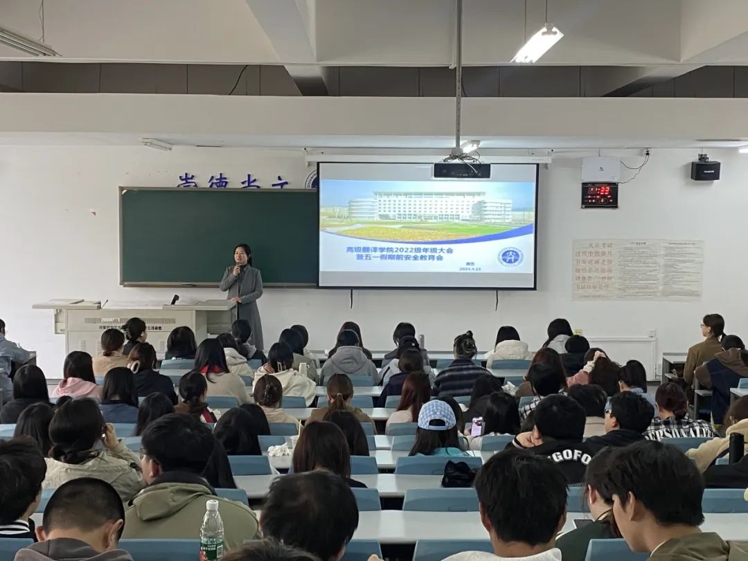 在22级年级大会上,龚艺老师介绍了学校迎评工作的进展,鼓励同学们以最饱满的状态迎接专家们的到来。龚老师还针对五一假期的安全问题进行了强调,提醒同学们外出时注意交通安全,保护好人身及财产安全,留校同学注意寝室用电安全。