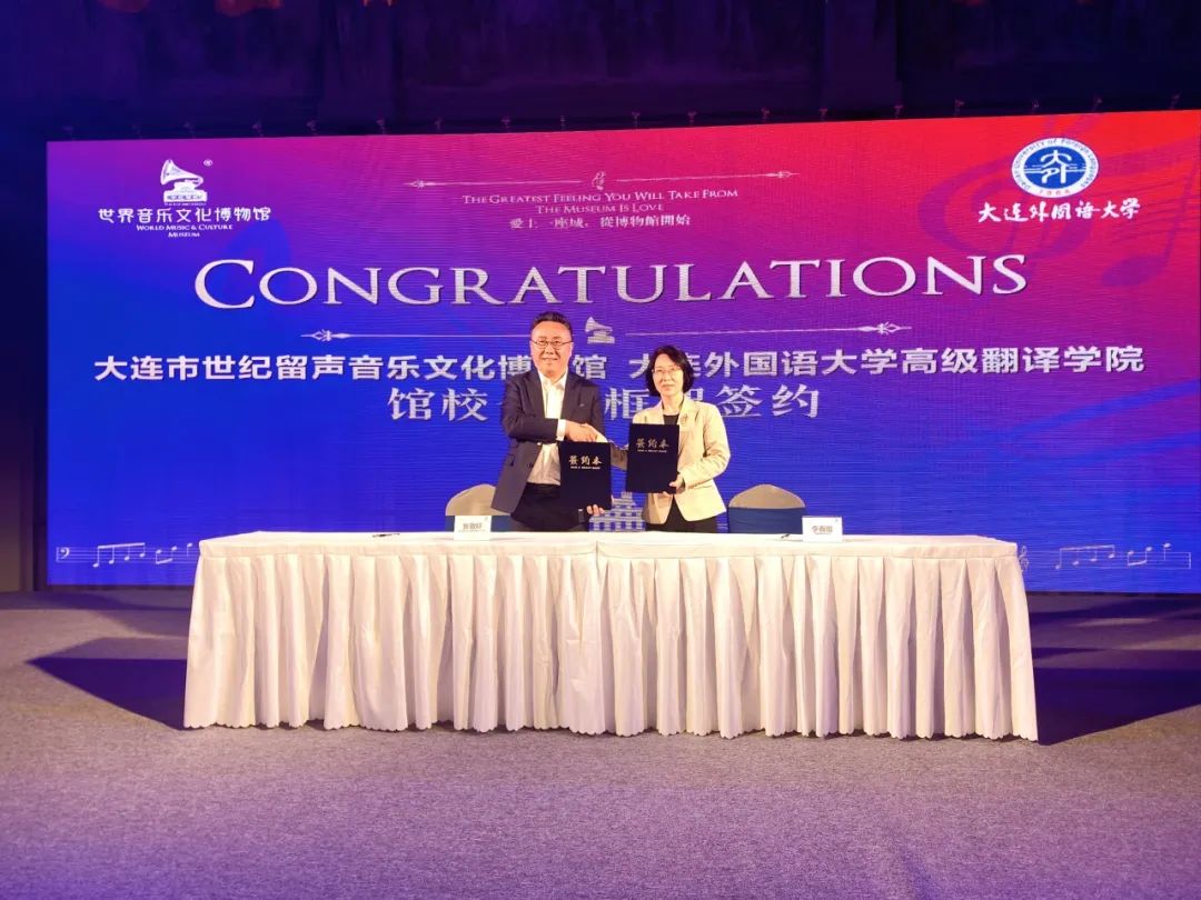 院长李春姬、副院长邹德艳、视听翻译俱乐部负责教师肖嬿洁及部分学生代表与世界音乐文化博物馆创办人、馆长张敬轩先生及博物馆部分管理人员参加了此次签约仪式。