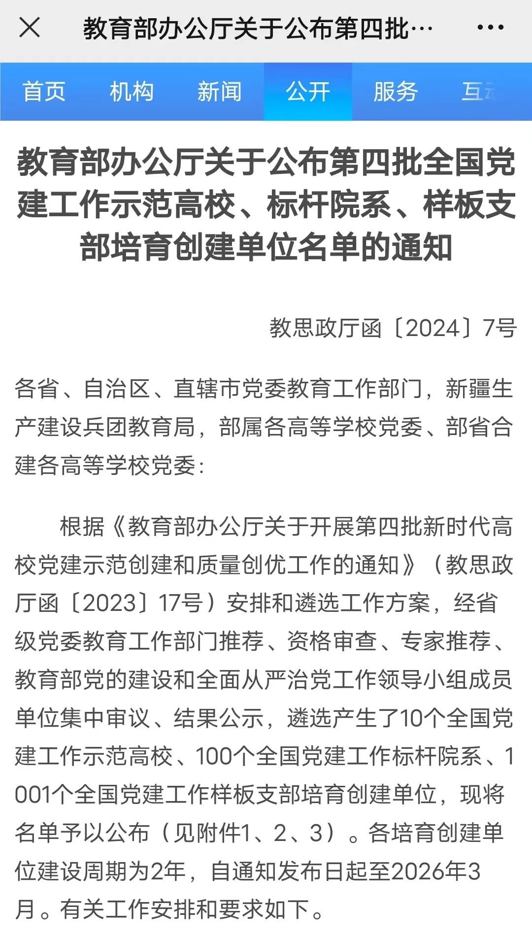 近日,教育部公布了第四批新时代高校党建示范创建和质量创优工作培育创建单位名单。六色网