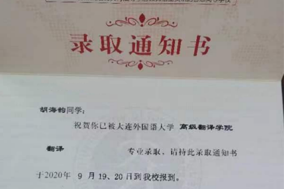 “返家乡”志愿者活动、大连新闻传媒红色沉浸式演艺首演会志愿者活动,最终被厦门大学英语笔译专业录取。她在毕业感想中提到“我将以此为动力,继续努力,不负众望,为实现自己的理想和为社会贡献力量而不懈奋斗。”