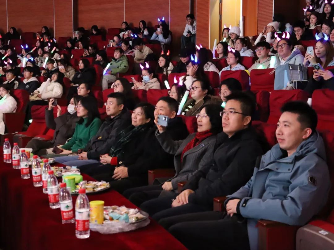 于大学生活动中心举办第八届“千里共传音”迎新年晚会。学院师生欢聚一堂,共同沉浸在这一盛宴之中。会场内座无虚席,大家于此一同庆祝新年的到来。
