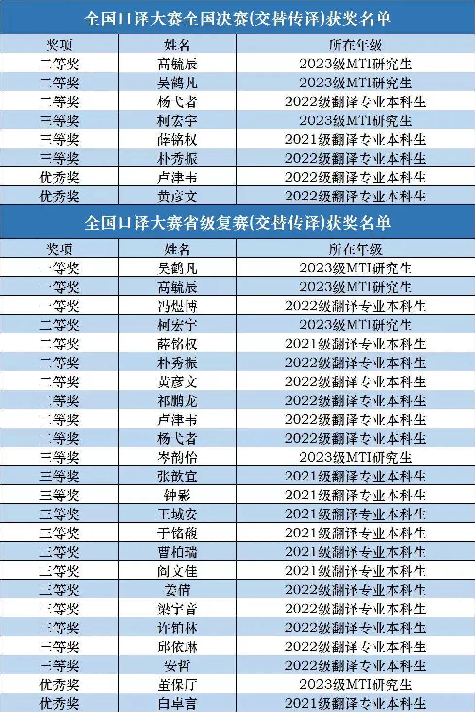 此外,另有数名高翻学子在省级复赛赛程中获奖,取得亮眼成绩。获奖名单如下: