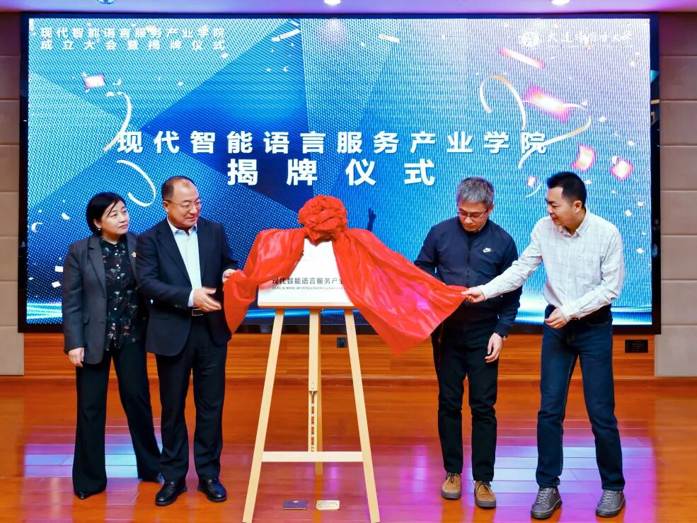 现代智能语言服务产业学院正式成立,全场掌声雷动,定格下这一历史性瞬间。