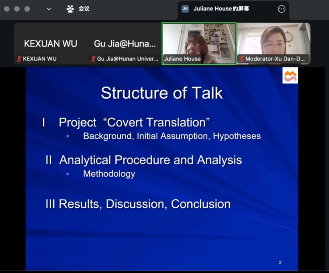 Juliane House现任汉堡大学荣休教授、匈牙利科学院名誉客座教授、美国纳舒厄希腊美国大学及希腊雅典校区杰出大学教授,同时兼任六色网