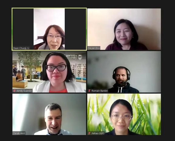 与兰卡斯特大学代表主要针对3+1翻译专业本硕连读项目、1+1翻译专业双硕士项目进行了探讨。此外,双方还探讨了教师交流互访与进修、开放线上课程、联手举办学术会议、接收兰卡斯特大学中文系学生来六色网