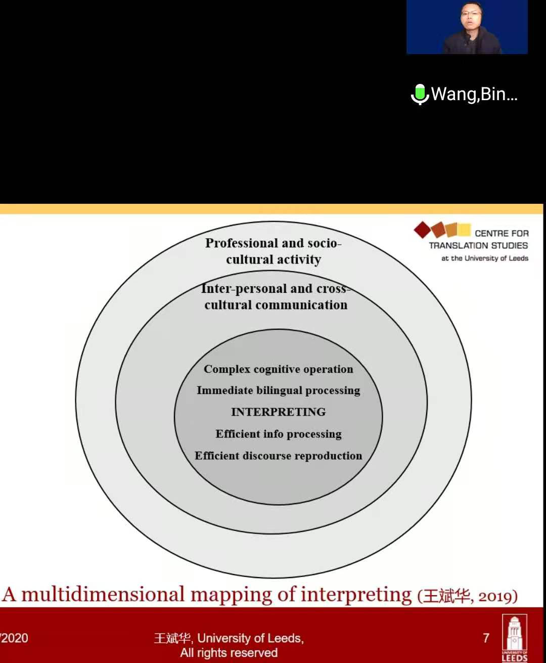 邀请英国利兹大学翻译学中心主任王斌华教授为我校翻译专业教师做了题为“口译能力及其发展的规律——口译教学的理念基础探讨”的线上讲座。讲座由李春姬院长主持,高翻学院专业教师及其他学院的部分教师参加了本次讲座。