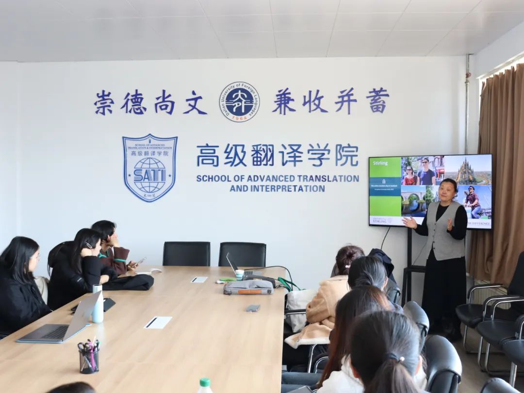 会议现场气氛热烈,同学们围绕课程衔接、签证政策及专业选择等问题积极提问,得到了Grace Wang老师的耐心解答。她还分享了斯特灵大学校友的成功案例,进一步激发了同学们的参与热情。展望未来,双方将深化合作,构建跨文化沟通桥梁,有序推进国际教育资源的互动共享。通过拓宽国际视野、提升外语应用能力,引导青年学子成长为既深谙中华文明精髓,又兼具国际视野的复合型人才。