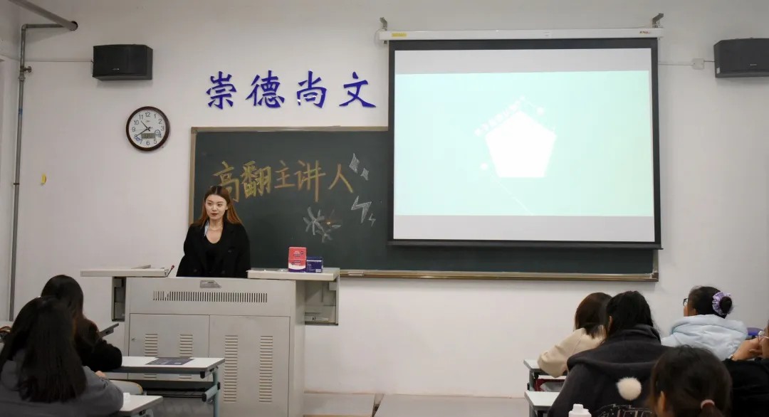于11B605教室举办了本学期第二次高翻主讲人活动。本次活动邀请到了李晓淇同学作为主讲人,她以“自我认知和未来规划”为主题,向到场同学进行了宣讲。
