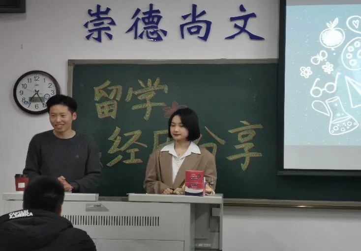于11B605教室举办了第三期高翻主讲人留学经历分享活动。在本次活动中,金凯奇、徐一帆两位同学都是2017级本科生,他们学习成绩优异,综合素质能力突出。金凯奇同学曾参加过奥塔哥大学的交换项目,并且近期取得了雅思8.5的优异成绩;徐一帆同学曾参加过英国布鲁奈尔大学“英语语言培训营”暑期项目,近期取得了雅思8.0的优异成绩,并成功拿到诺丁汉大学管理心理学专业和卡迪夫大学商业管理专业的offer。