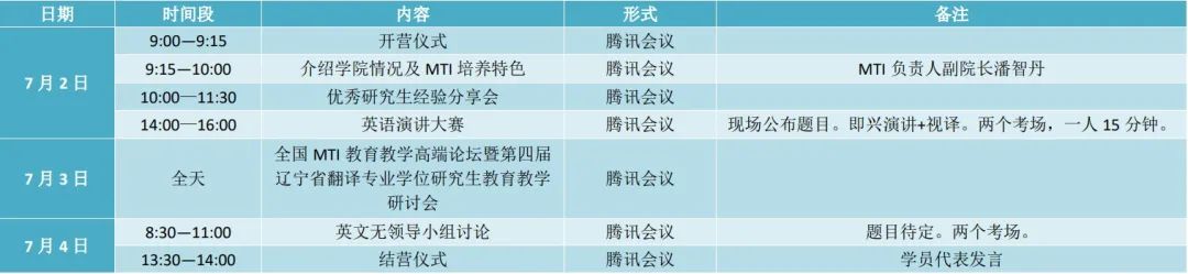 在夏令营活动期间,学院将采取各种方式对营员进行全面考核。根据申请材料、在营期间表现等综合情况,选拔出“优秀营员”。“优秀营员”如获得就读学校2022年研究生推免资格,并申请我校推免(需与“优秀营员”公示的培养单位、专业相同),可直接拟录取为我校2022年翻译专业硕士研究生。