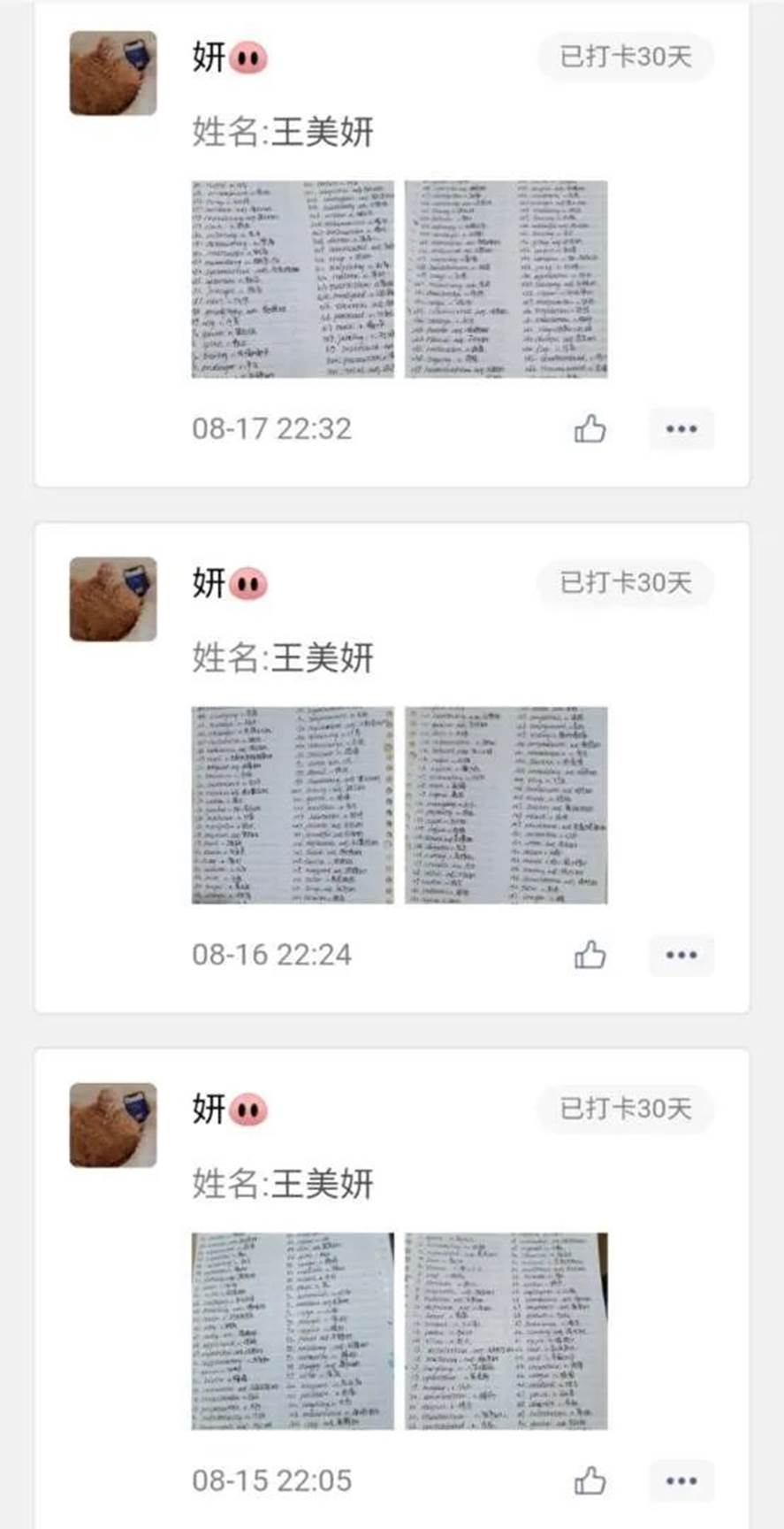 学习是一个日积月累的过程。在这个假期中,我每天坚持打卡,练习听力并预习下学期的课程。同时这个打卡也是督促我每天学习、提高自我的辅助工具,帮助我养成适合自己的良好学习习惯。很感谢学院开展这样的活动来帮助我们提升自我,不断学习。这样的打卡活动能够真正适合时代的需要和我们自身学习的强度,让我终身受益。
