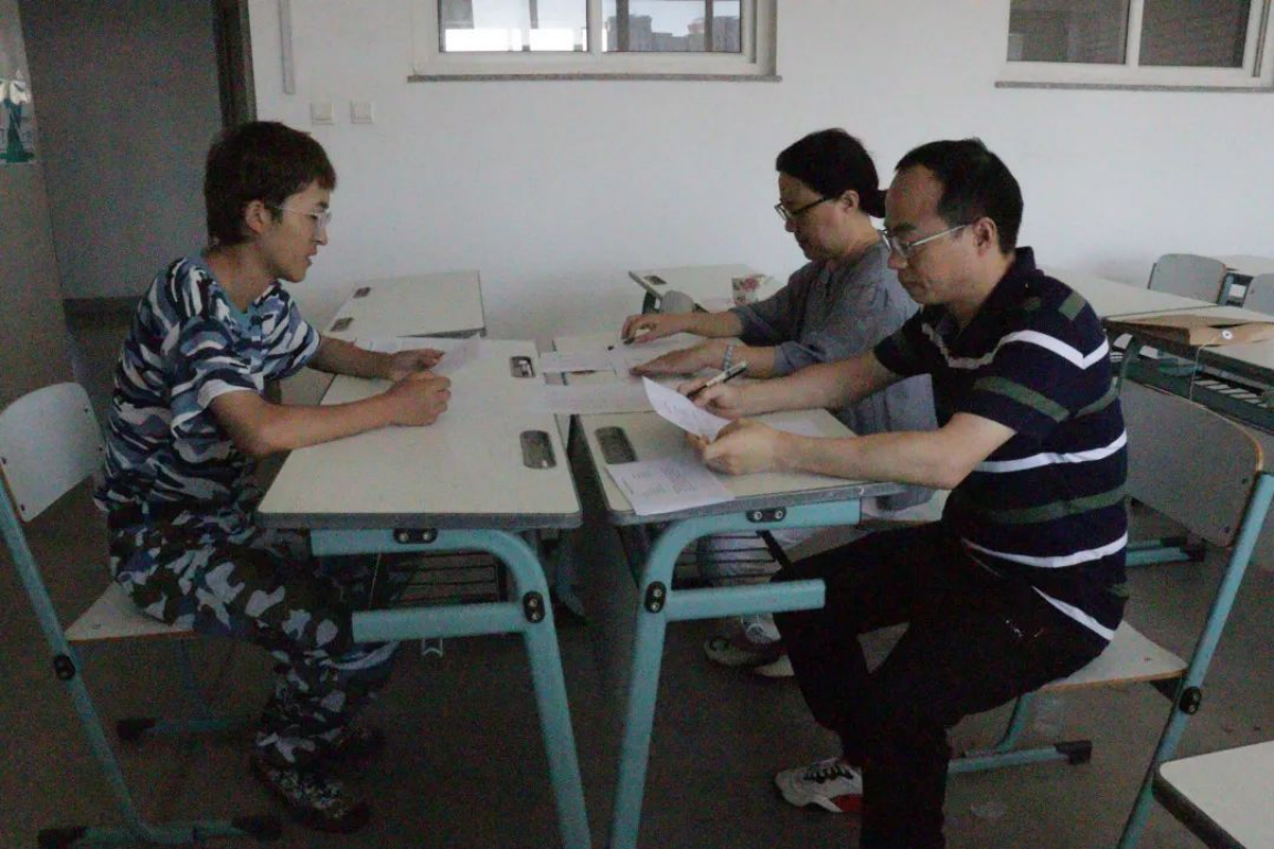 教师夏维红、宋要军、魏立、赵颖、赵勇、杨芳老师组成三组评审团,于611、613、606三个教室同时进行语音测评和指导。在班导生组织下,新生们有秩序地进入教室进行测评。