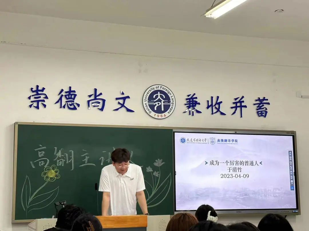 举办了本学院第八十四期高翻主讲人。本次活动邀请到了于清竹同学作为主讲人,以“成为一个厉害的普通人”为主题,分享了他大学四年的生活经验和求职经验。