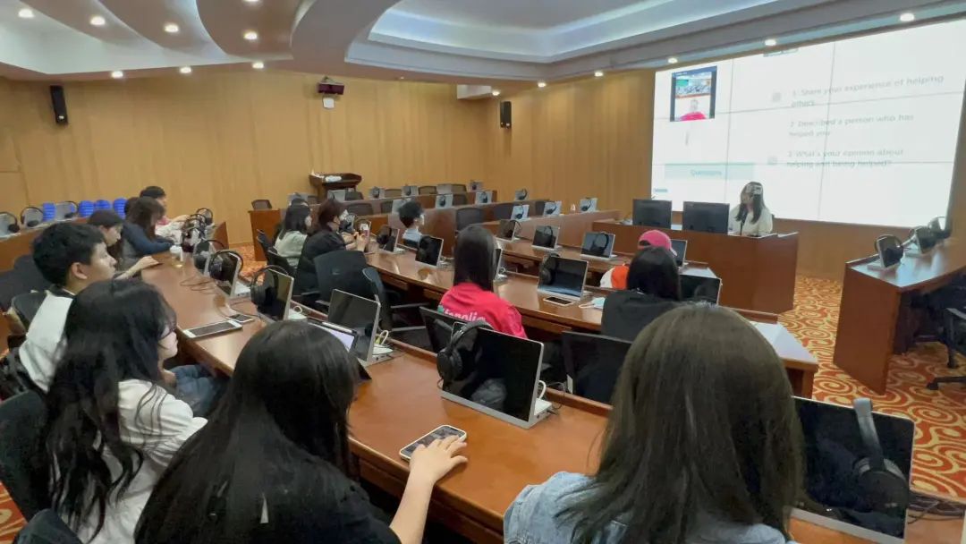 于励业楼5楼虚拟仿真口笔译实训中心举办了本学期第十次英语角活动。本期英语角以“Helping Others ”为主题,邀请外教Daniel通过腾讯会议出席。在此次活动中同学们积极参与,彼此倾听,与外教共同探讨了互相帮助的重要意义。