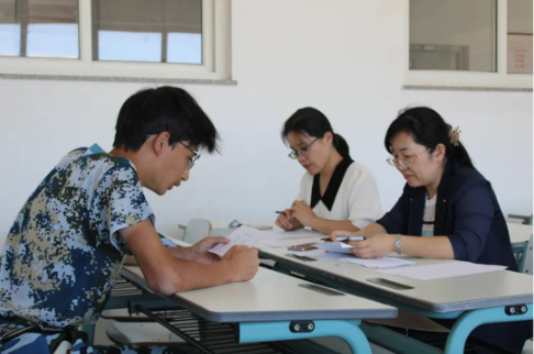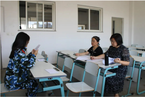 教师宋要军、肖嬿洁、吴杨、赵颖、杨迪、魏立担任评委。在各班小导的协助下,语音测评活动有序开展。同学们按照学号依次进入考场,进行英语短语和语段的朗读。