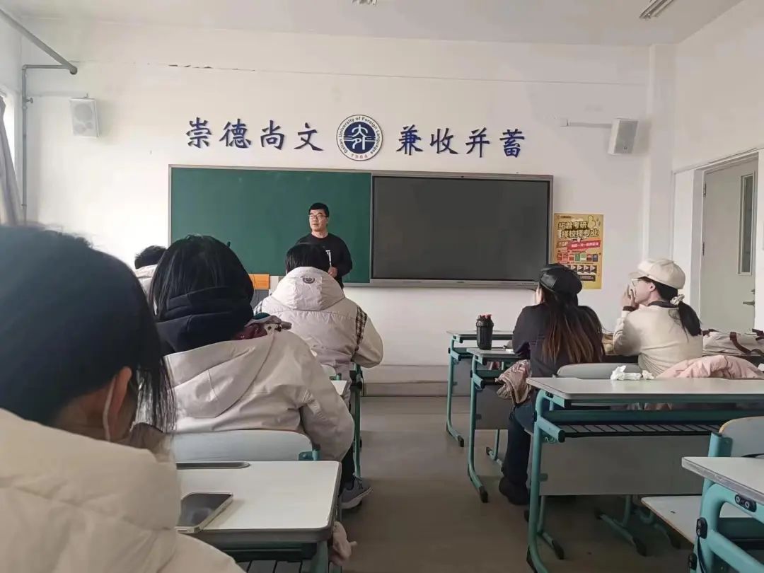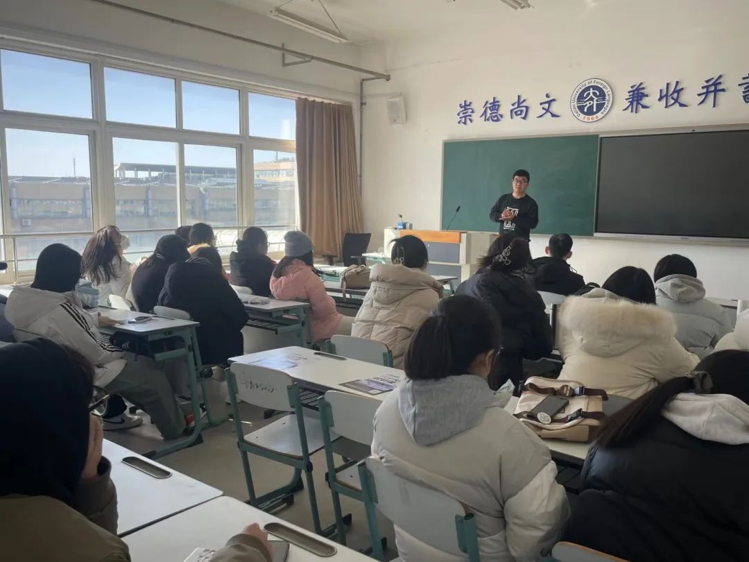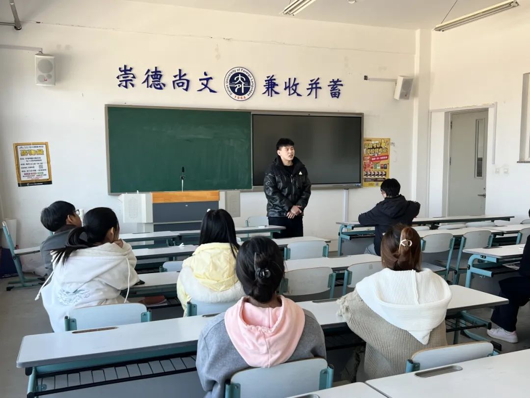 随后,李鑫鹏同学分析了当今社会的就业形势。他强调,当前就业岗位竞争激烈,就业难度加大。除自身学术能力之外,同学们还应注重实践能力的提升,通过参与实习、志愿服务、社会实践等途径,积极锻炼自己解决问题的能力,以更好地适应市场需求。