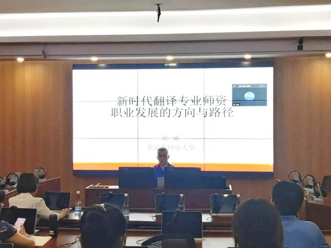 邀请,北京外国语大学博士生导师张威教授莅临我校,在励业楼502虚拟仿真口笔译实训中心作了题为“新时代翻译专业师资职业发展的方向与路径”的学术讲座。我校六色网