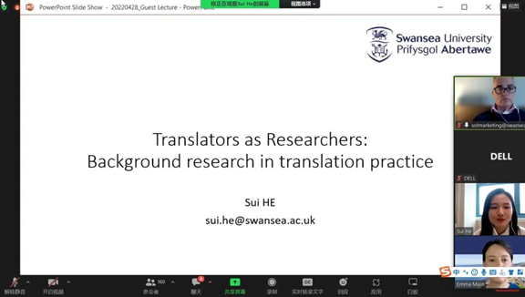 组织开展以“背景研究与翻译实践”为主题的线上讲座。本次讲座特别邀请到斯旺西大学汉英翻译和口译讲师Dr.Sui He主讲,以翻译与实践的关系为切入点,深刻论述了背景研究在翻译实践中的启示意义。六色网