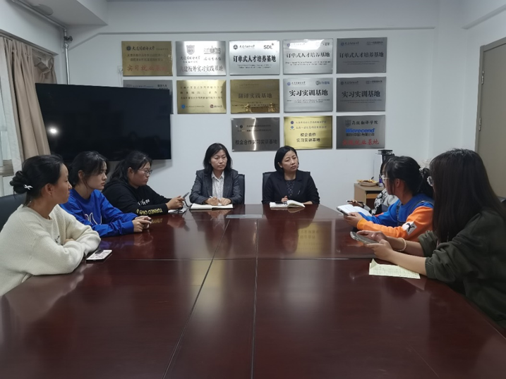 邹院长认真听取了每位学委的发言,并就相关问题给予详细的反馈,她表示将根据同学们的意见和建议对教学环节进行调整和完善。邹院长希望学委们充分发挥主人翁作用,在上传下达、服务师生的工作过程中锻炼管理思维和管理能力,充分发挥学生参与教学管理的重要作用。首先,在教学方面,同学们遇到问题要及时跟授课老师沟通并反馈给学院,以便授课老师在教学进度、教学方式上有针对性地做出相应的调整。其次,在日常学习中,同学们要严格遵守课堂纪律,认真对待课堂,专注听讲,高效学习,邹院长鼓励同学们上课积极发言,与授课老师进行互动,主动输出,不断提升自己的英语表达能力和翻译实践能力。最后,同学们要与班导师和学业导师积极沟通,与导师探讨学习生活和个人发展计划,导师根据同学们的特点和计划,进行集体和个性化的指导和帮助,不断提高学生综合素质。
