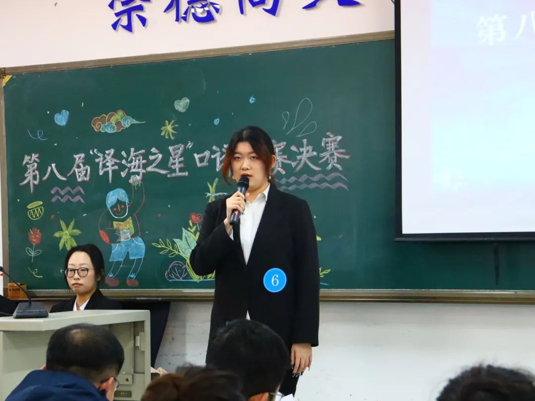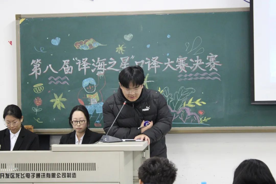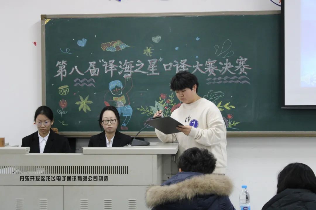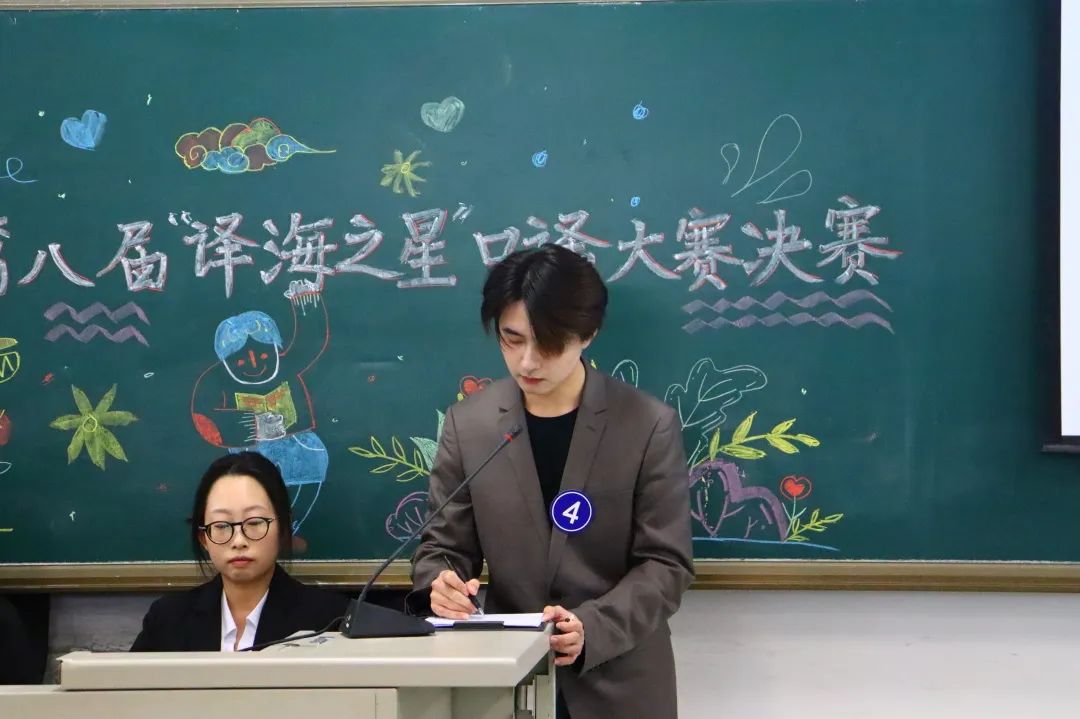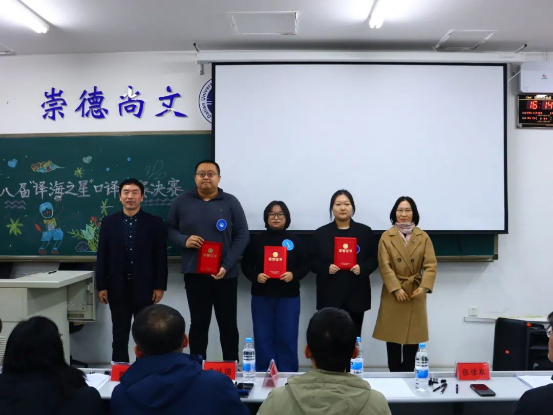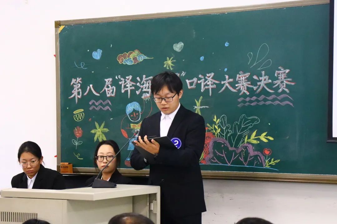 第八届“译海之星”口译大赛总决赛在明德楼301教室成功举办。此次比赛由赵颖、魏立、孟健、吴延国、张佳东五位老师担任评委。在半决赛中脱颖而出的选手们沉着冷静,全神贯注地投入比赛当中,为我们呈现了一场精彩绝伦的口译大赛。