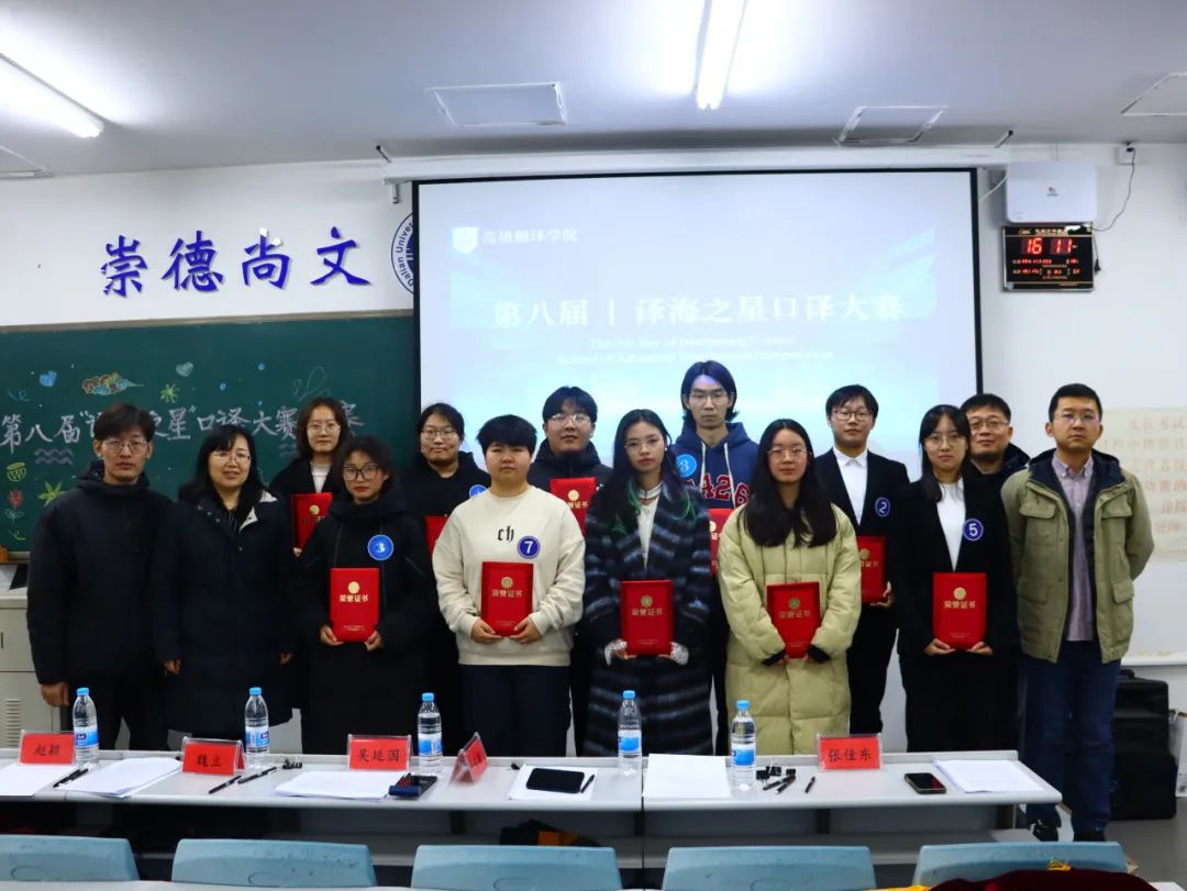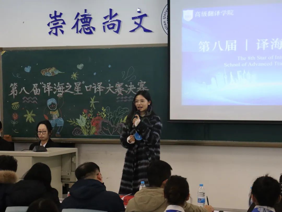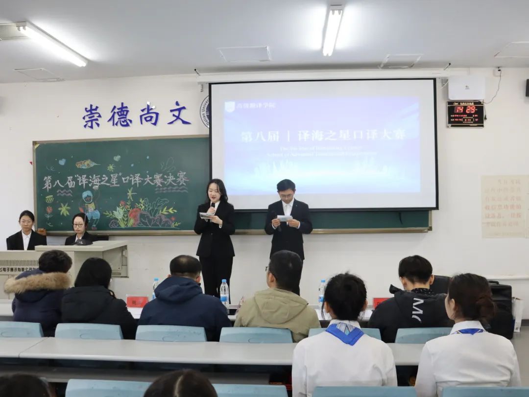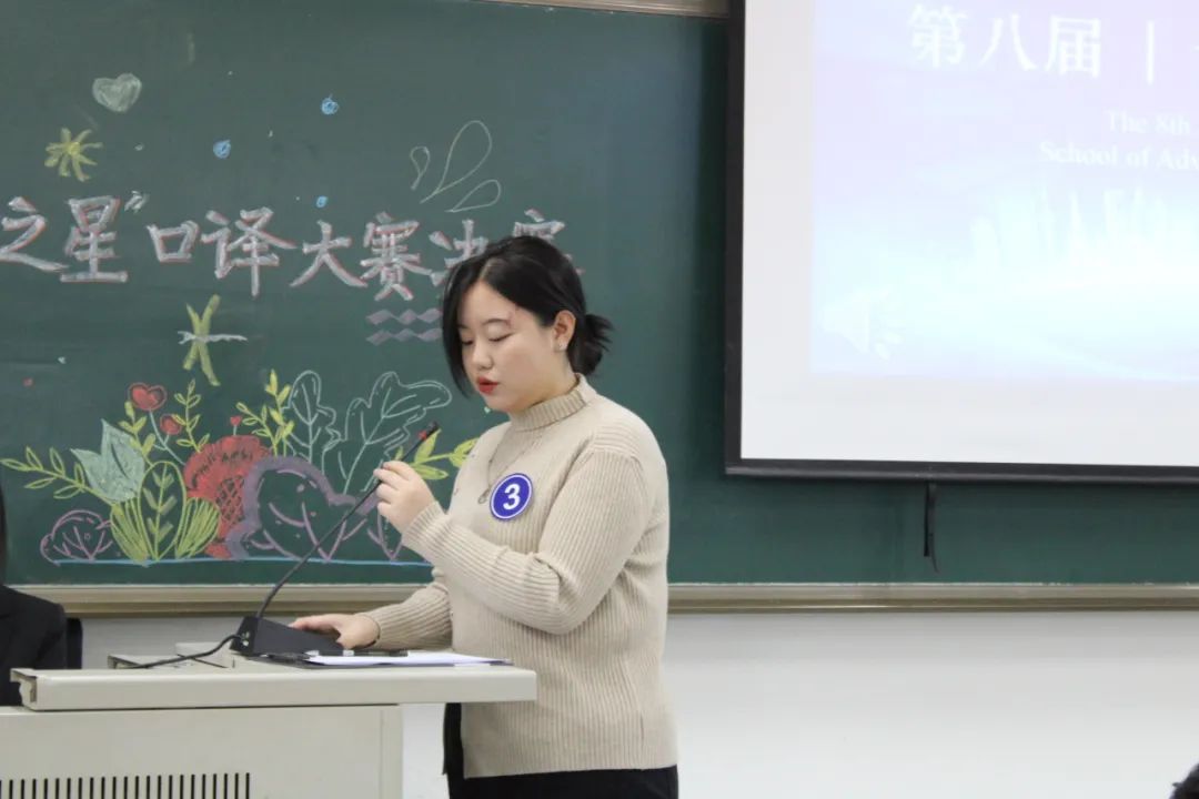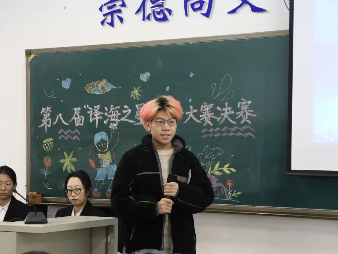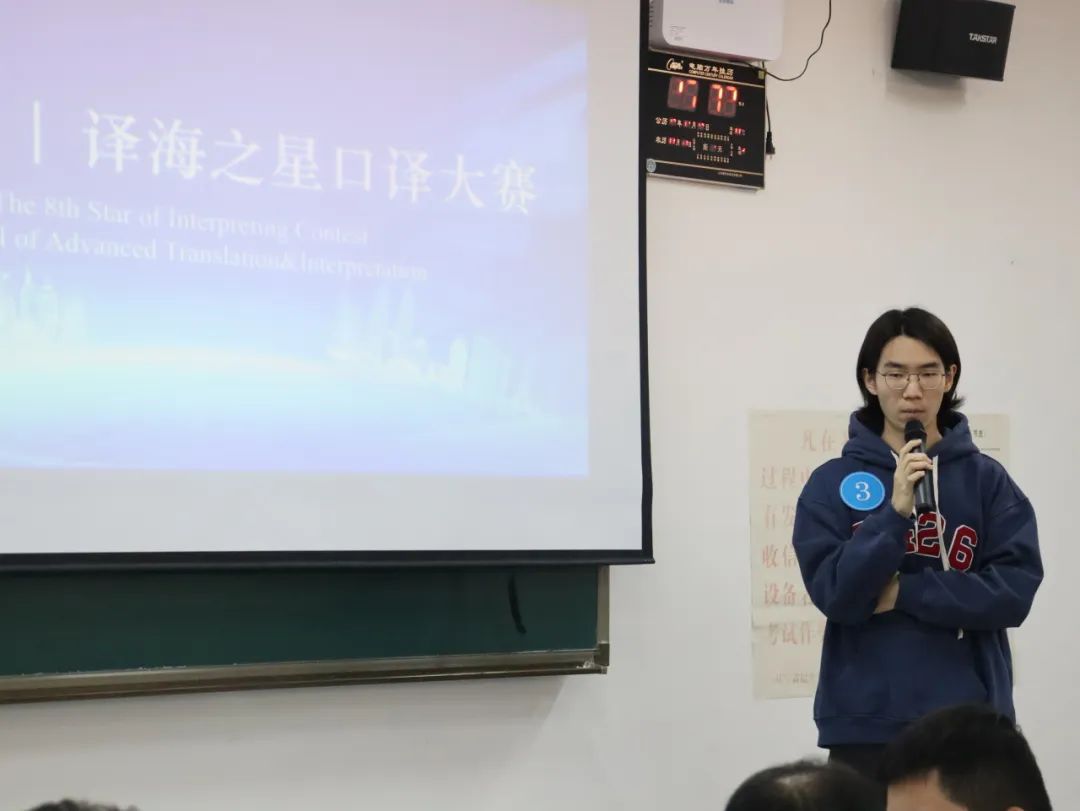 第八届“译海之星”口译大赛总决赛在明德楼301教室成功举办。此次比赛由赵颖、魏立、孟健、吴延国、张佳东五位老师担任评委。在半决赛中脱颖而出的选手们沉着冷静,全神贯注地投入比赛当中,为我们呈现了一场精彩绝伦的口译大赛。