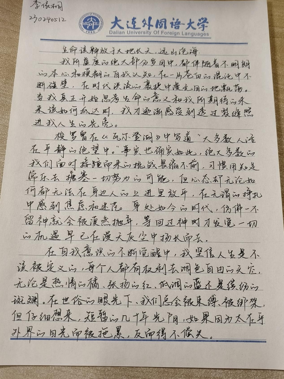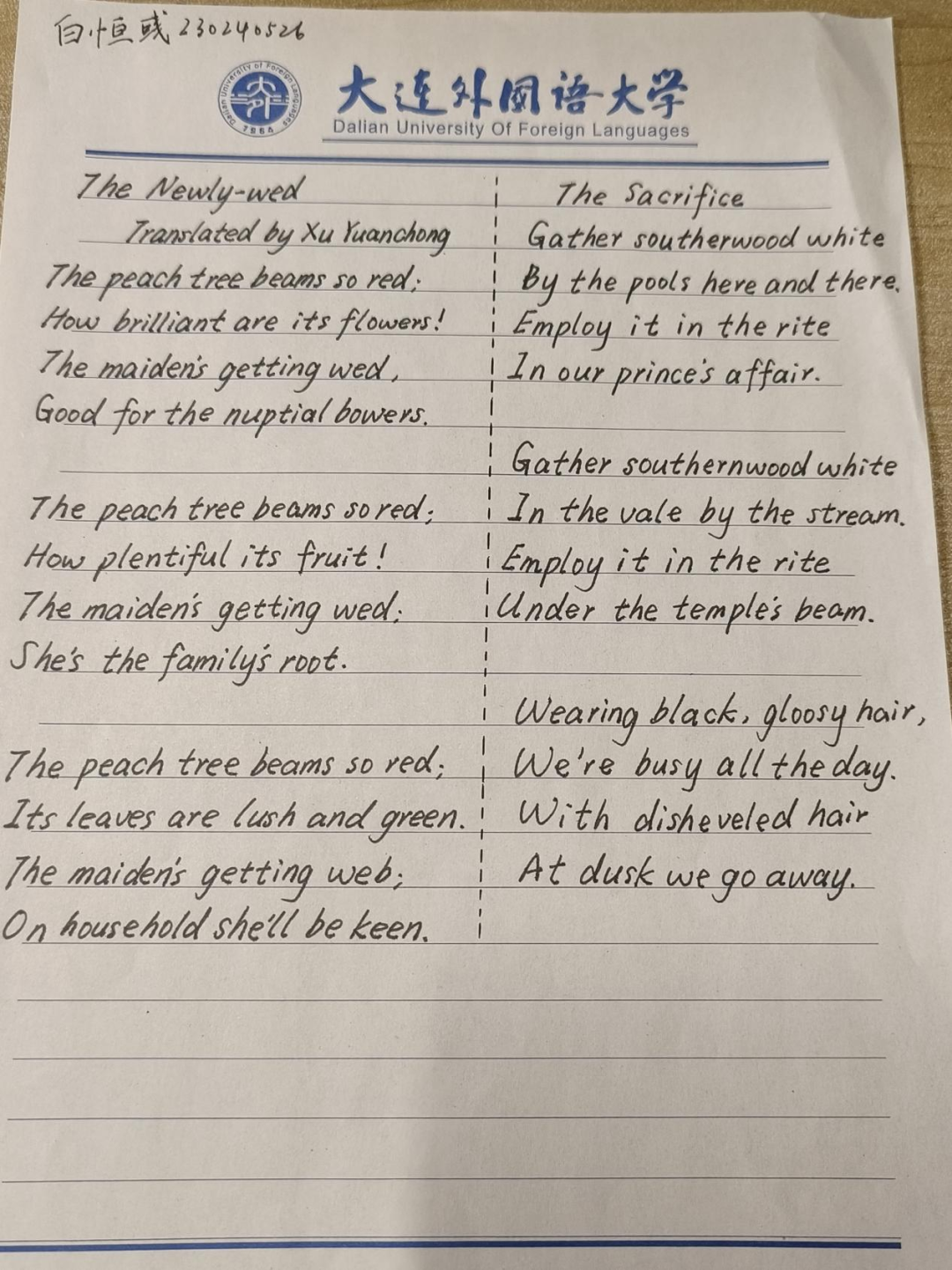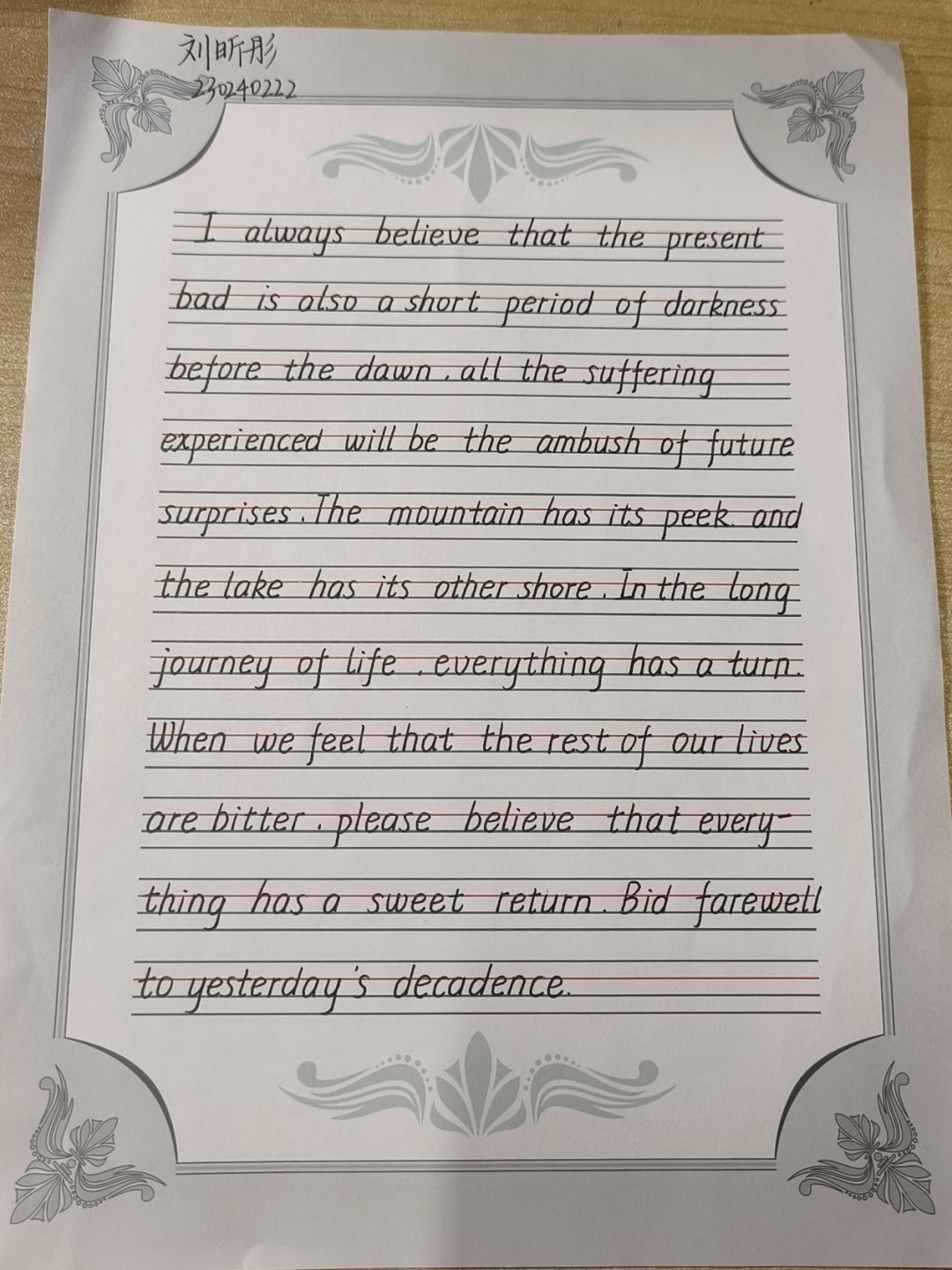 紧跟时代步伐,深入学习贯彻党的二十大精神,致力于促进双语教育的发展,培养学生审美能力和艺术修养,学院举办了第四届双语书法大赛。本次大赛不仅结合了中西方文化,传承中华优秀传统文化,还为学生提供了一个展现自己的机会,促进跨文化交流与理解,推动精神文明建设。
