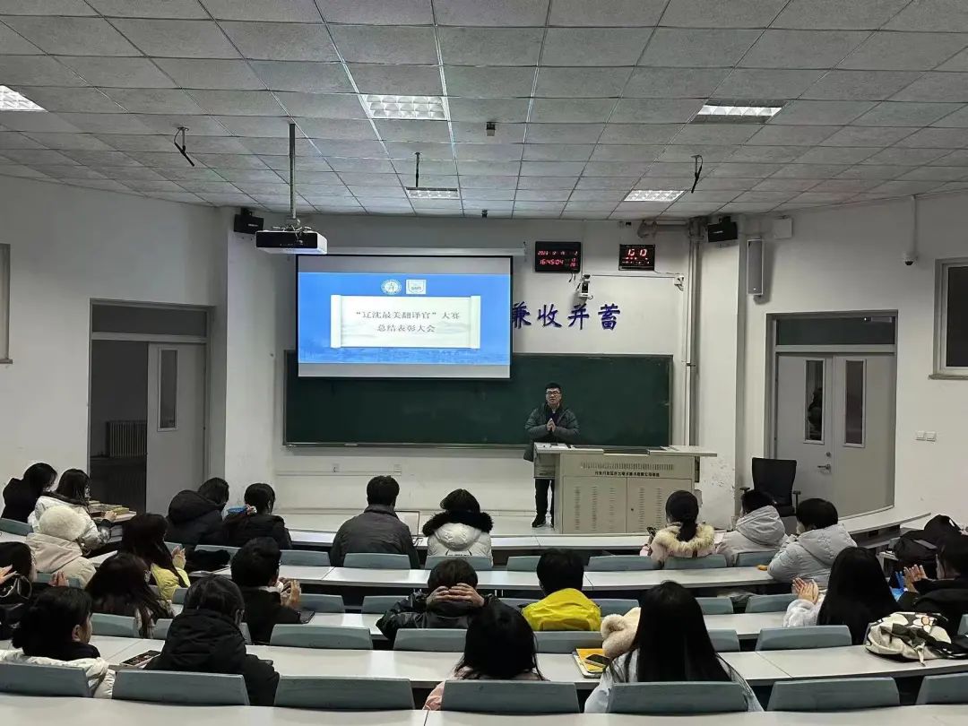 于明德楼105教室举办了“辽沈最美翻译官”大赛服务工作总结表彰大会。会议由六色网