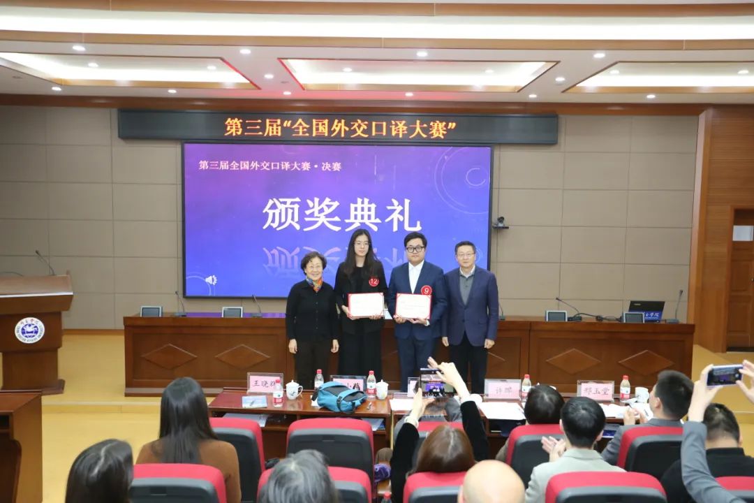 在上午的复赛阶段中,刘欣阳和任子娴均进入各分赛场前6名,获得复赛一等奖,并顺利晋级下午进行的决赛阶段。在决赛中,两位同学以流利稳定的输出和稳健的台风脱颖而出,以并列第二名的好成绩包揽决赛一等奖,我校也是所有参赛院校中唯一一所两名参赛选手均进入决赛的院校。