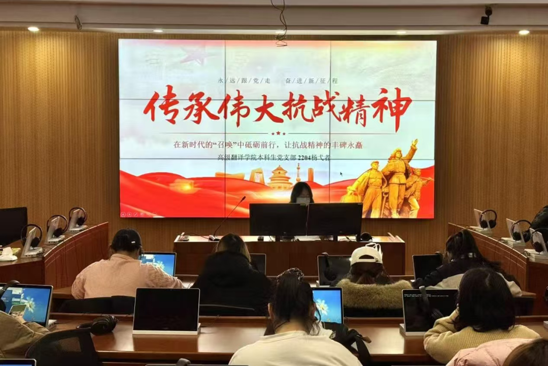 首先,杨弋者同学带领大家回顾了“七七事变”“九一八事变”“南京大屠杀”等历史事件。在此基础上,杨弋者同学进一步阐释了伟大抗战精神的内涵,并表示我们要从抗战历史中汲取力量。紧接着,她以扶贫干部为例,讲述了中国人民在新时代下继续发扬“抗战精神”,不断创造新辉煌的历程的故事。最后,杨弋者同学呼吁大家要以“踔厉奋发”的姿态,将个人梦想融入民族复兴的伟大事业中,用青春和汗水书写属于当代青年的担当。通过此次党课学习,全体积极分子深受触动。身为新时代青年,同学们将始终以勇担重任的责任意识锤炼本领,将“请党放心,强国有我”的青春誓言融入日常的一言一行、化为奋进的实际行动。