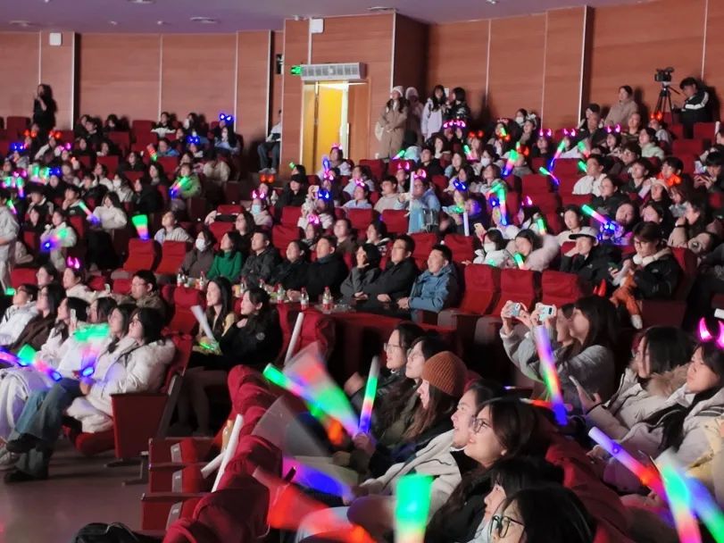 于大学生活动中心举办第八届“千里共传音”迎新年晚会。学院师生欢聚一堂,共同沉浸在这一盛宴之中。会场内座无虚席,大家于此一同庆祝新年的到来。